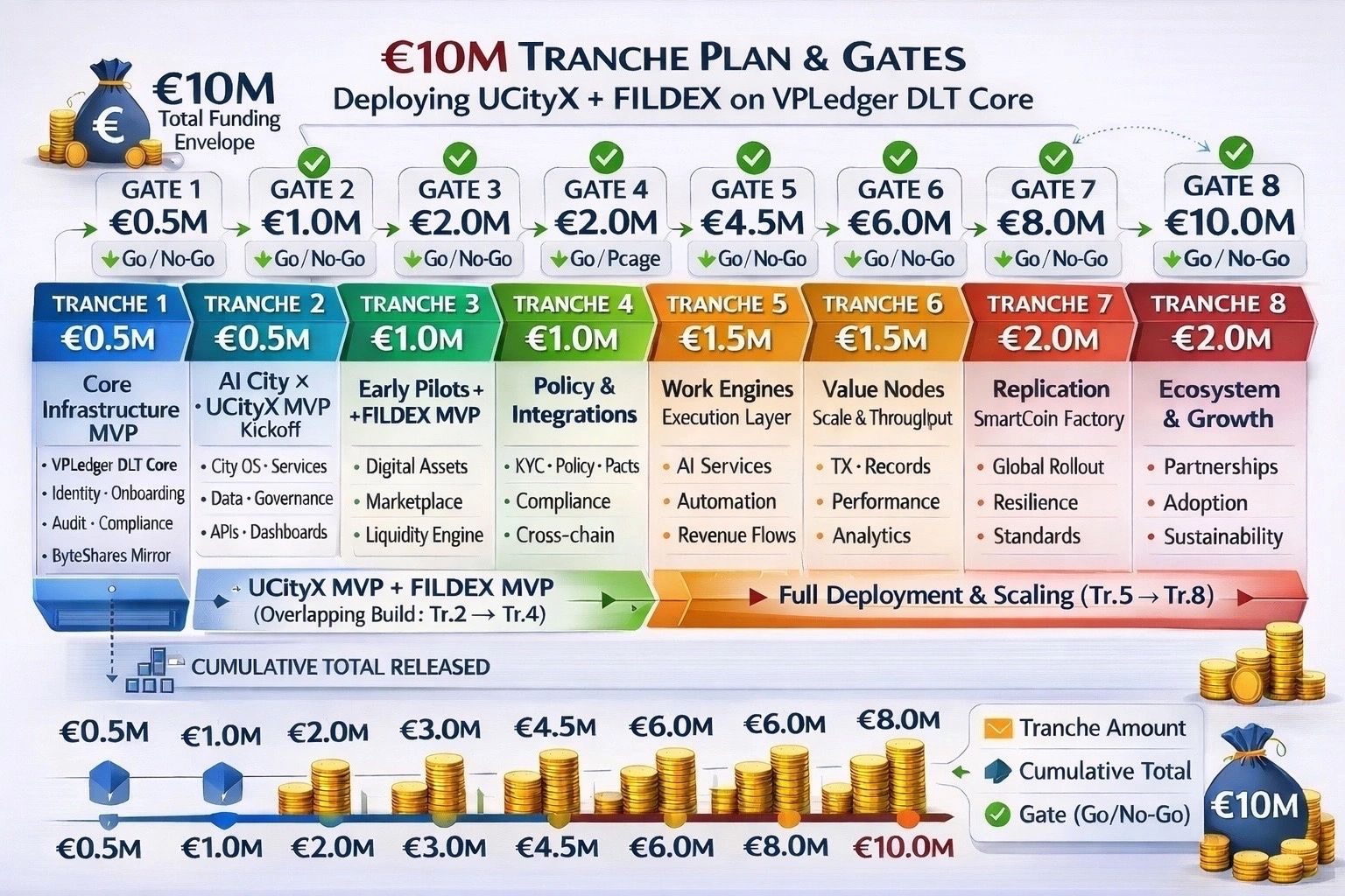 Roadmap for ByteShares følger den låste €10M trancheplan med acceptance gates.